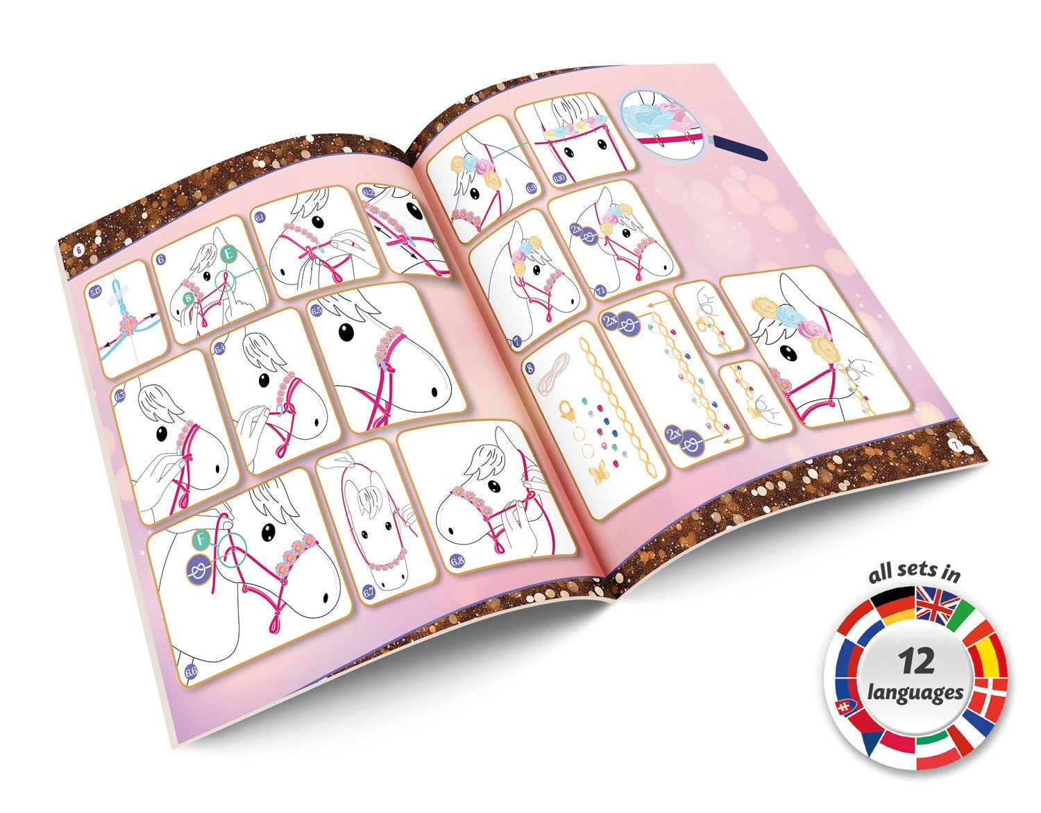Das Glitzerhalfter Hobby Horsing Set für Kinder ab 6 Jahren ist ein hochwertiges Kreativset, mit dem Kinder ihr Steckenpferd individuell dekorieren können. Enthalten sind farbige PP-Seile, Perlen, Anhänger und Kunstblumen, die mithilfe der farbig bebilderten Anleitung zu einem eigenen glitzernden Halfter gestaltet werden. Das Set fördert Feinmotorik, Kreativität und eignet sich perfekt als Zubehör für Hobby Horsing und Steckenpferd-Dekoration. Die Materialien lassen sich leicht verarbeiten und ermöglichen einzigartige Designs – ideal für Training, Turniere oder als persönliches Highlight am eigenen Hobby-Horsing-Pferd.
