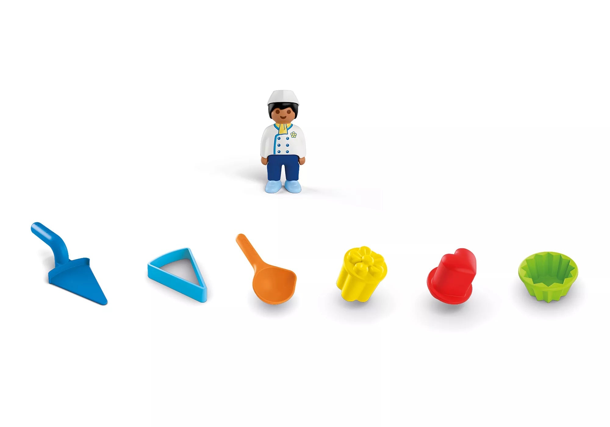 Ab nach draußen – die Sand-Bäckerei hat geöffnet. Mit der PLAYMOBIL JUNIOR Sand-Bäckerei können schon die Kleinsten ihre ersten Backideen im Sand umsetzen. Ob großer Sandkuchen oder kleiner Muffin: Mit Schaufel, Kuchenheber und Förmchen entstehen immer neue Sandkreationen.