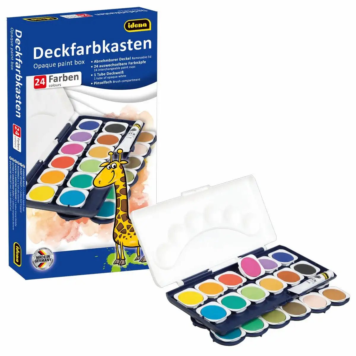 • Hochwertiger Idena Deckfarbkasten mit 24 intensiven Farben