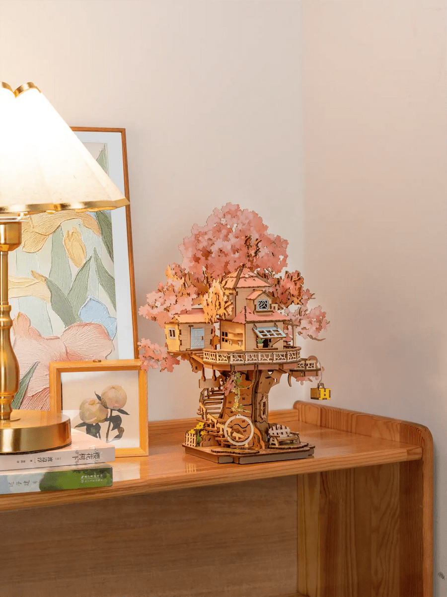 Der ROKR Sakura Tree House TGS04 Holzbausatz ist ein künstlerisches Miniaturprojekt, das japanische Ästhetik und handwerkliche Präzision vereint. Mit 535 exakt lasergeschnittenen Teilen entsteht ein zartes Baumhaus unter einer Krone aus rosafarbenen Kirschblüten. Wendeltreppen, Geländer und kleine Möbel verleihen dem Modell Tiefe und Realismus. Dank der präzisen Bajonettverbindungen lässt sich das Haus stabil zusammenbauen – ganz ohne Kleber. Das fertige Baumhaus mit Balkon und Schaukelstuhl strahlt Ruhe und Harmonie aus und wird zum außergewöhnlichen Deko-Highlight. Ein anspruchsvolles DIY-Projekt für Liebhaber fernöstlicher Designs und hochwertiger Holzkunst.