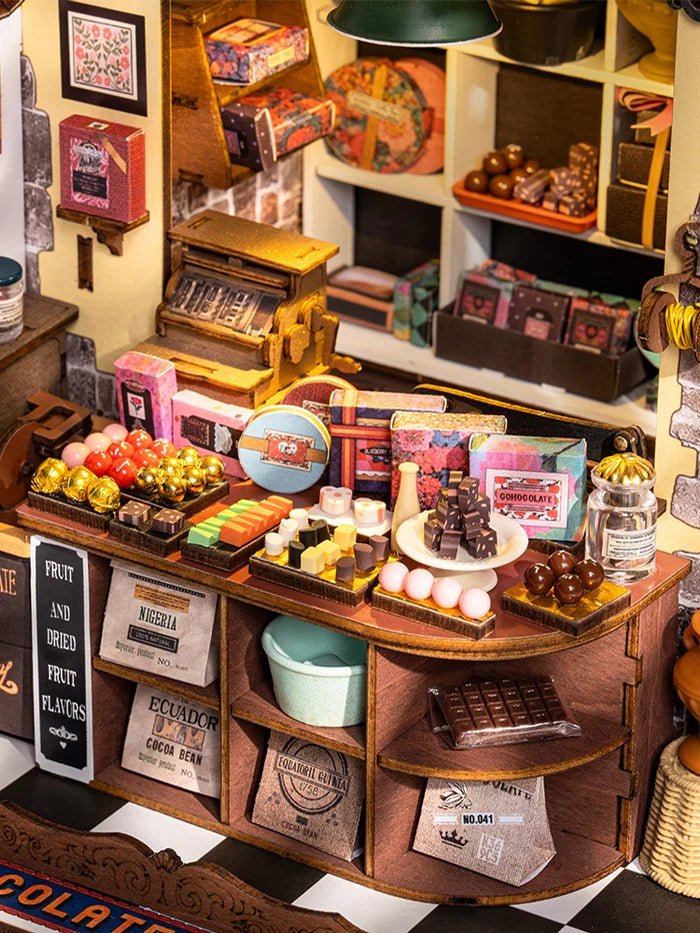Detailverliebter Miniatur-Schokoladenladen zum Selberbauen