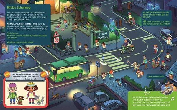 Lerninhalte: Straße überqueren, Fahrrad fahren, Sicherheit im Dunkeln