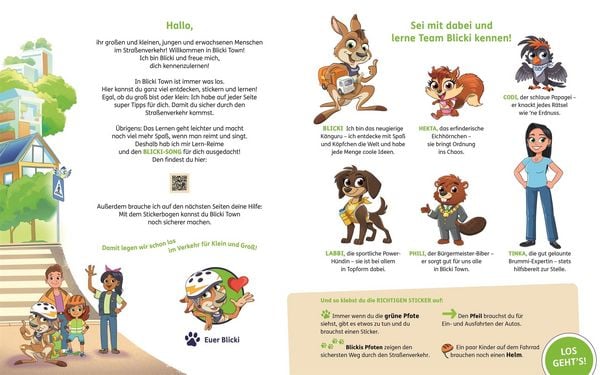 Das Wimmelbuch „Blicki blickt’s – Sicher im Straßenverkehr mit Känguru Blicki“ vermittelt Kindern ab 4 Jahren spielerisch die wichtigsten Verkehrsregeln. Mit 5 detailreichen Wimmelbildern lernen Kinder typische Verkehrssituationen kennen – vom Überqueren der Straße am Zebrastreifen über sicheres Fahrradfahren bis hin zu richtigem Verhalten im Dunkeln. Begleitet werden sie von Känguru Blicki und seinem Team, die mit Suchaufträgen, Quizfragen, Stickern und Nachtleuchtfarbe für jede Menge Spaß beim Lernen sorgen. Über den beiliegenden QR-Code stehen zusätzlich weitere Übungen online zur Verfügung. Das Buch eignet sich perfekt für Kindergarten und Grundschule und unterstützt als Teil der erfolgreichen Verkehrsinitiative „Blicki blickt’s“ des Blicki e.V. die Verkehrserziehung auf moderne und nachhaltige Weise.