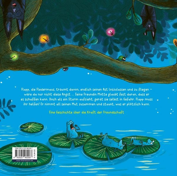Flapp lernt fliegen erzählt die berührende Geschichte einer kleinen Fledermaus, die davon träumt, endlich ihren Ast zu verlassen und zu fliegen. Doch die Angst hält ihn zurück – bis ein Sturm aufzieht und seine Freundin Motte Hilfe braucht. In diesem entscheidenden Moment entdeckt Flapp eine Stärke in sich, von der er nie gedacht hätte, dass sie in ihm steckt. Die liebevollen Reime und stimmungsvollen Bilder von Sarah Warburton machen dieses Buch zu einem besonderen Vorleseerlebnis. Ein einfühlsames Bilderbuch, das Selbstvertrauen, Mut und die Kraft von Freundschaft vermittelt – perfekt für kleine Abenteurer ab 4 Jahren.