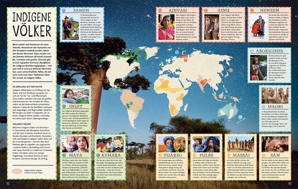 Großformatige Karten und ausklappbare Seiten zu allen Kontinenten