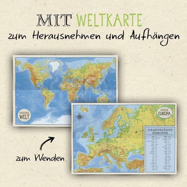 Mit herausnehmbarer Welt- und Europakarte zum Aufhängen