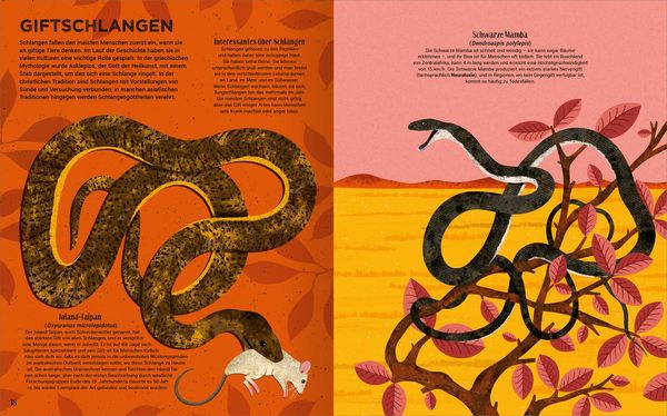Vielfältige Infos: Mit vielen interessanten Fakten über die verschiedenen Arten der Gifttiere, ihre Lebensräume und die Besonderheiten ihres Gifts