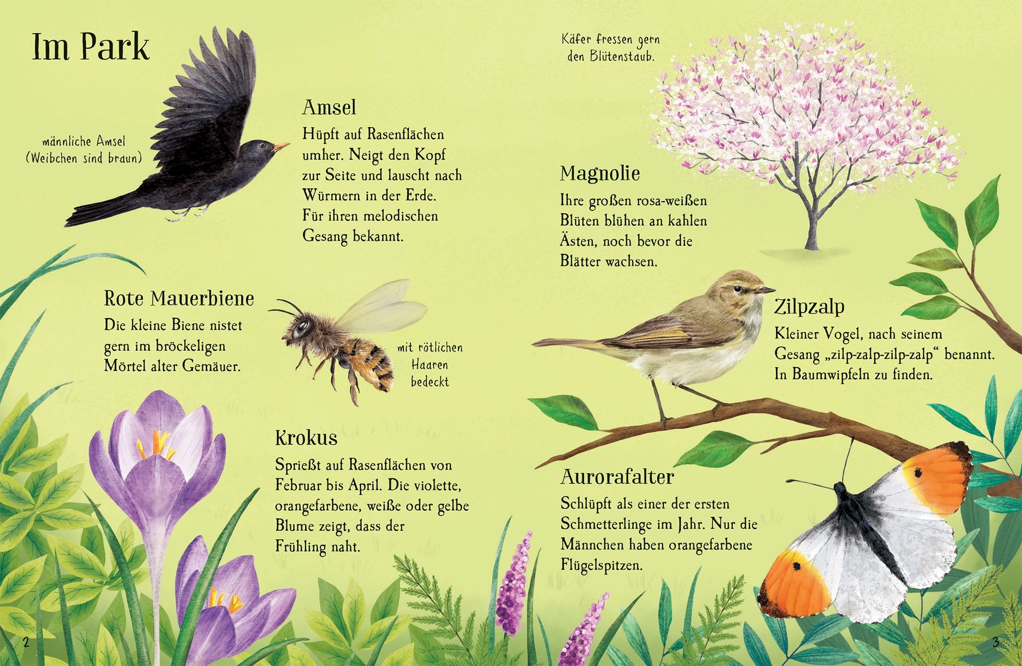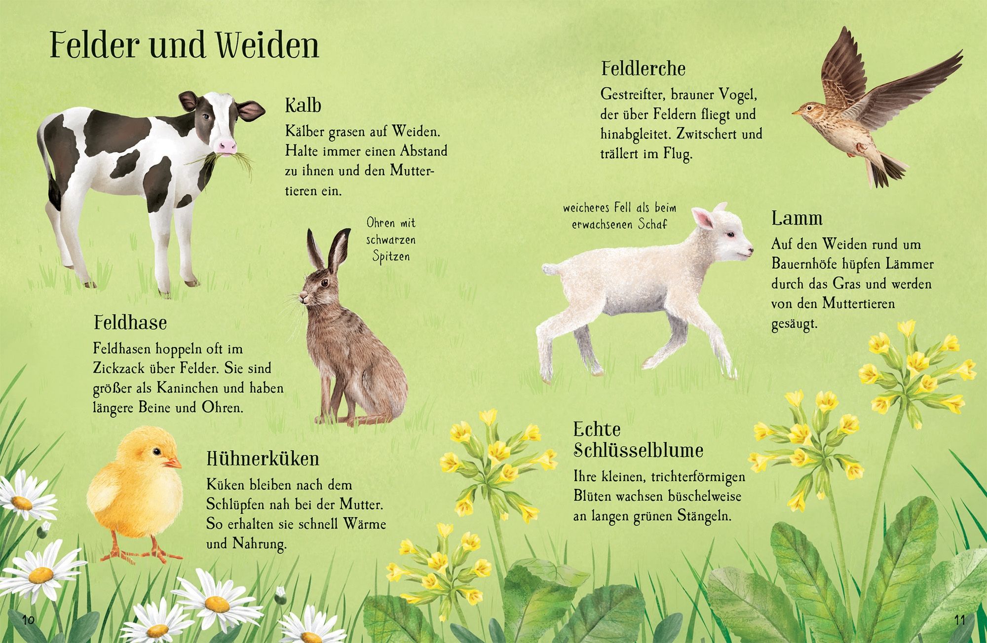 Kleinkindgerechte Naturführer gibt es viele – der Usborne Mini-Naturführer Kinder Frühling hebt sich durch sein konsequentes Taschenformat und die integrierte Sichtungstabelle klar ab. Kinder lesen nicht nur, was Zilpzalp oder Aurorafalter ausmacht, sondern markieren direkt im Buch, was sie selbst entdeckt haben – das macht Naturbeobachtung zu einem aktiven Erlebnis. Die 60 Sticker verstärken diesen Mitmach-Effekt und motivieren dazu, die Natur gezielt zu erkunden.