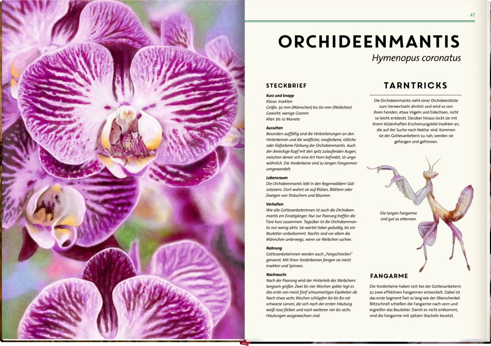 Das Sachbuch Tiere Kinder ab 6 Jahren von Coppenrath zeigt, wie 15 Tiere Tarnung als überlebenswichtiges Werkzeug einsetzen – von der Giraffe im Schattenspiel der Bäume bis zum Frosch zwischen Wasserpflanzen. Die pinke Sonderfarbe setzt dabei einen auffälligen visuellen Kontrast, der die versteckten Tiere auf den großflächigen Bildern sichtbar macht und zum aktiven Suchen einlädt. Als Tierbuch Tarnung Kinder aus der Reihe Nature Zoom verbindet das Buch atemberaubende Naturbilder mit präzisen Steckbriefen und erstaunlichen Fakten, die sowohl Erst- als auch Selbstleser ansprechen. Das nachhaltig gedruckte Papier macht das Buch auch in seiner Herstellung stimmig zum Naturthema.