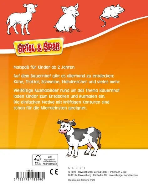 Die Motive sind bewusst einfach gehalten und auf das frühe Ausmalen abgestimmt. Kühe, Schweine, Traktoren und weitere Bauernhofelemente laden zum Entdecken ein, ohne zu überfordern. Der Malblock eignet sich für kurze Beschäftigungsphasen und freies Gestalten. Er ist als erstes Malbuch gedacht und unterstützt das selbstständige Ausprobieren von Farben und Bewegungen.