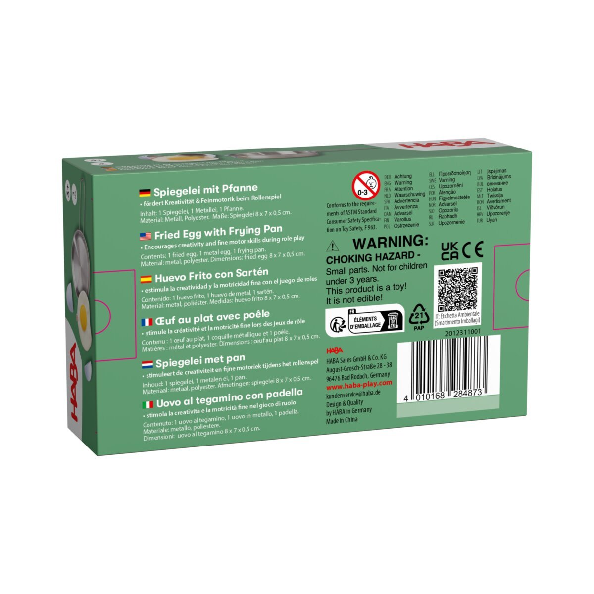 Das Spiegelei mit Pfanne aus Stoff lädt Kinder ab 3 Jahren zu fantasievollen Rollenspielen rund um die Küche ein. Das weiche Spiegelei lässt sich im Metallei „aufschlagen“ und anschließend in der kleinen Pfanne „braten“. Durch die realistische Gestaltung entsteht ein besonders lebendiges Spielerlebnis, das Kinder motiviert, eigene Gerichte zuzubereiten und ihre Kochkünste auszuprobieren. Gleichzeitig werden spielerisch Feinmotorik, Hand-Auge-Koordination und kreative Fähigkeiten gefördert. Ein liebevoll gestaltetes Zubehörteil, das jede Spielküche bereichert und ideal mit anderen Creative-Play-Sets kombinierbar ist.