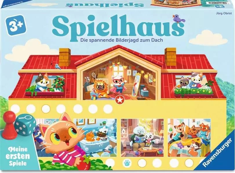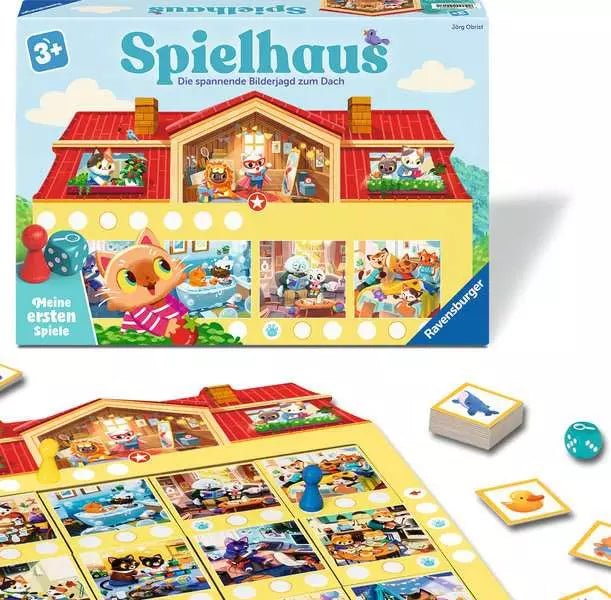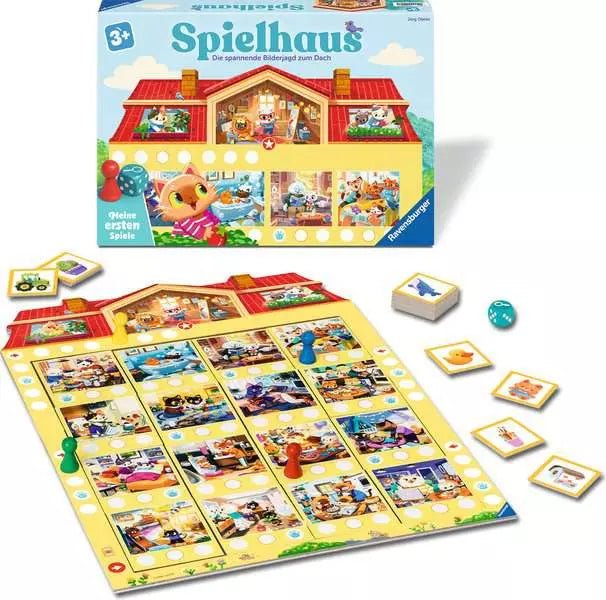 Wird eine Lupe gewürfelt, ziehen die Spieler eine Bildkarte und suchen den abgebildeten Gegenstand in allen Zimmern. Wird er entdeckt, zieht die Spielfigur in den passenden Raum weiter. Das Haus wird bei jedem Spiel neu zusammengestellt, wodurch sich immer neue Bildkombinationen und Wege ergeben. Spielhaus ist ein langjähriger Ravensburger Klassiker, dessen Regeln behutsam an heutige Spielgewohnheiten angepasst wurden, ohne den ruhigen Spielablauf zu verändern.
