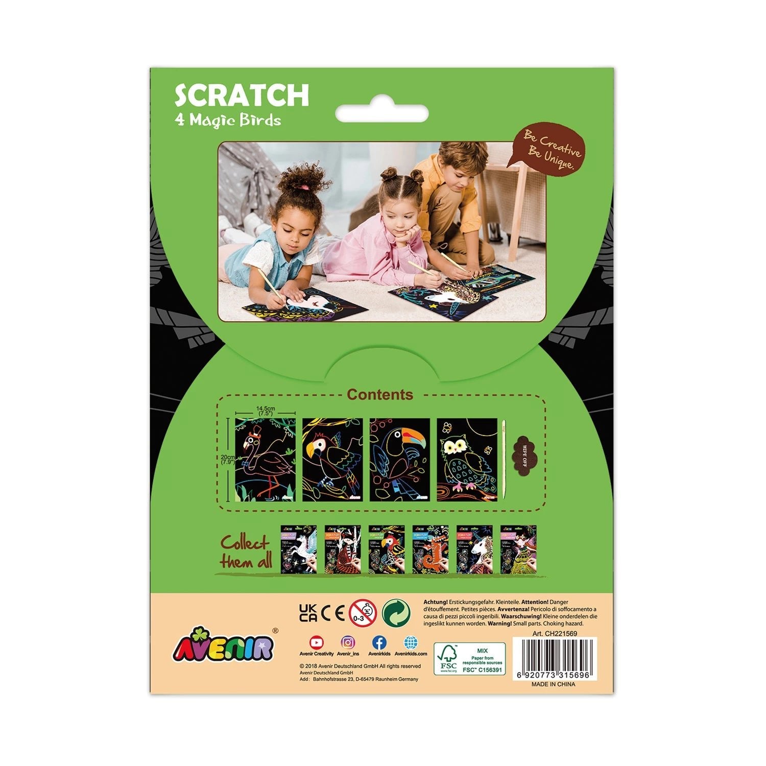 Tolle Kratzbilder kinderleicht mit dem Stift selbstgemacht. Inhalt: 4 Kratzpapiere, Stift, Zubehör und Anleitung mit Abbildungen.