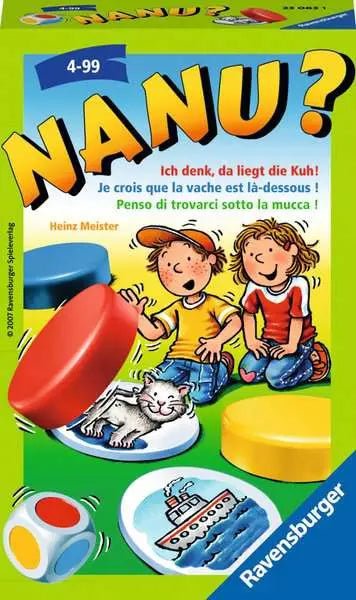 Bei Nanu? werden bunte Deckel über verdeckten Motiven platziert. Die Spieler merken sich, welches Motiv sich unter welcher Farbe befindet. Nach dem Würfeln entscheidet die gewürfelte Farbe, welcher Deckel aufgedeckt werden darf. Jetzt zeigt sich, wer sich am besten erinnert und die richtigen Zuordnungen im Kopf behält.
