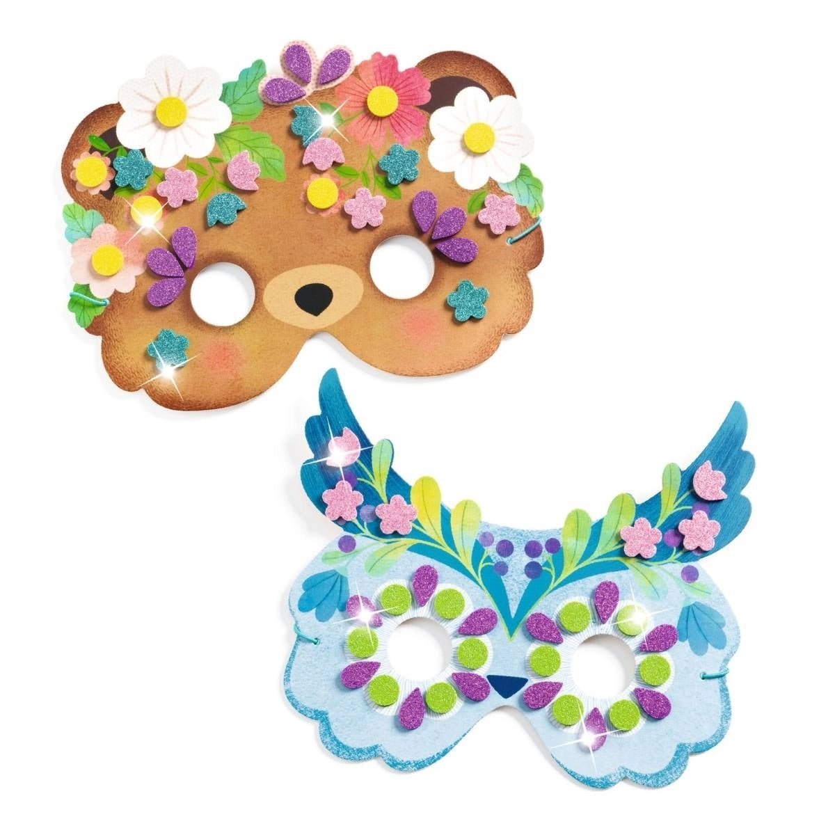 Das Bastelset Masken Kinder ab 4 Jahren bietet acht liebevoll gestaltete Waldtiermasken zum individuellen Verzieren. Kinder kleben die glitzernden Elemente nach Farbmarkierung auf und gestalten Schritt für Schritt ihre eigene Tiermaske. Das Set eignet sich ideal zum masken basteln mit kindern im Kindergartenalter oder für kreative Nachmittage zu Hause. Djeco kombiniert stabile Materialien mit klarer Anleitung und unterstützt eigenständiges Arbeiten. Die fertigen Masken lassen sich mit den beiliegenden Gummibändern direkt tragen. Erhältlich im Laden in Berlin Prenzlauer Berg und online bestellbar.