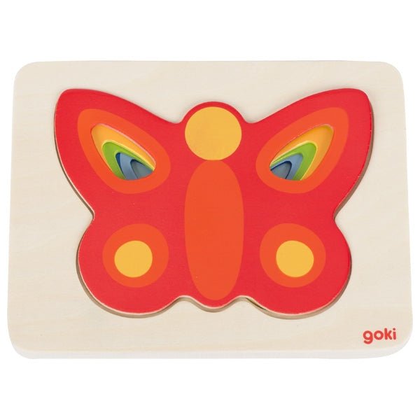 Dieses Schichtenpuzzle zeigt einen Schmetterling in unterschiedlichen Größen. Ziel ist es, die einzelnen Teile der Größe nach zu erkennen und passend in die vorgesehene Form einzulegen. Der übersichtliche Aufbau ermöglicht einen einfachen Einstieg in das Puzzeln.