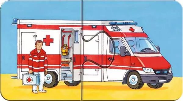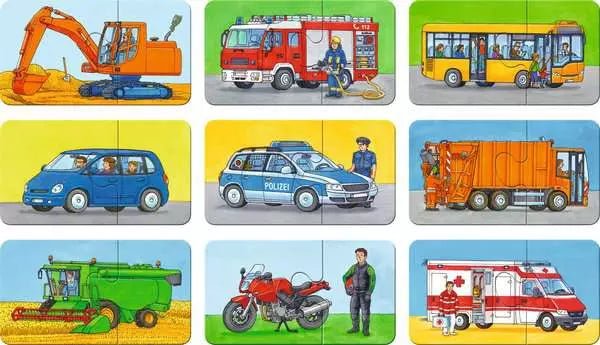 Das my first puzzles Set Einsatzfahrzeuge von Ravensburger besteht aus 9 zweiteiligen Puzzles mit Motiven aus der Lebenswelt von Kleinkindern. Ob Polizeiauto, Krankenwagen oder Feuerwehr – die Fahrzeuge kennen Kinder aus dem Alltag. Die Puzzleteile sind besonders groß und dick, sodass sie gut gegriffen und zusammengesteckt werden können. Eltern bestimmen selbst, wie viele Pärchen sie gleichzeitig anbieten möchten. So erleben auch jüngere Kinder rasch erste Erfolgserlebnisse und entwickeln Freude am Puzzeln.