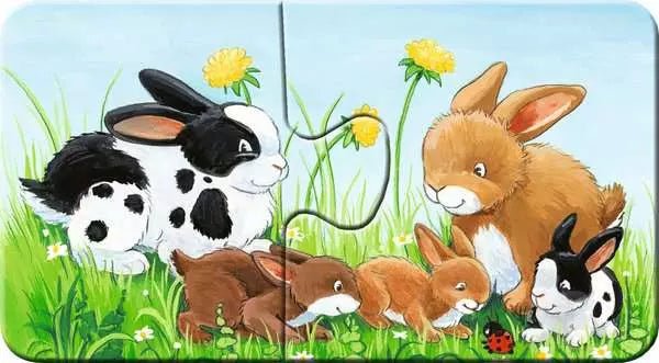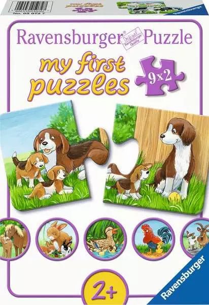 Puzzle ab 2 Jahren mit 9 Tierfamilien-Motiven und je 2 großen Teilen