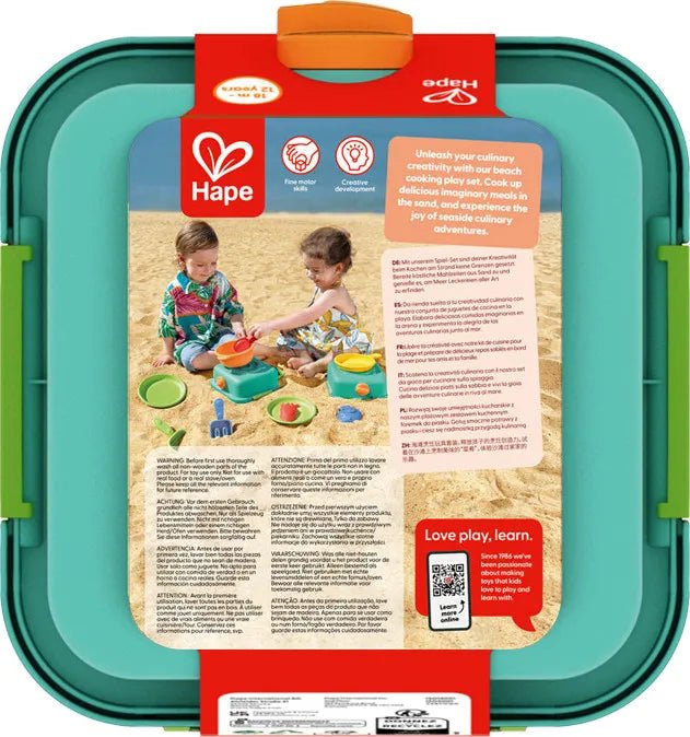 Sandspielzeug von Hape — komplettes Sandküchen-Spielset mit Utensilien, Förmchen und Schaufel für kreative Kochrollenspiele an Strand, Garten und Sandkasten, ab 18 Monaten.