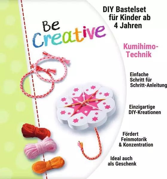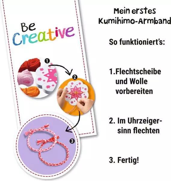 Mit dem BeCreative Mini Kumihimo Freundschaftsbändchen Set von Ravensburger entdecken Kinder spielerisch die Welt des Bastelns. Basierend auf der japanischen Flechtkunst Kumihimo entstehen im Handumdrehen schöne, runde Armbänder – ganz ohne Vorkenntnisse.