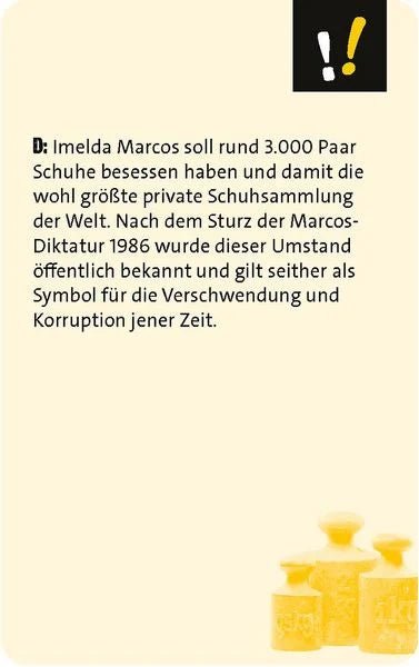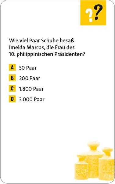 Ein unterhaltsames Wissens- und Schätzquiz mit 75 ungewöhnlichen Fragen, das Neugier und Einschätzungsvermögen gleichermaßen fordert.