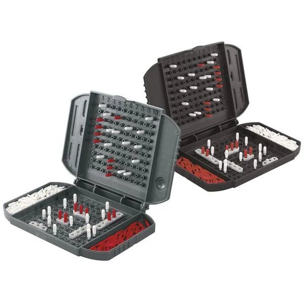 Das kompakte Format eignet sich für Autofahrten, Flugreisen, Zugfahrten oder den Urlaub. Enthalten sind 2 Kommandostationen, 10 Schiffe, rote Stifte, weiße Stifte sowie eine Spielanleitung in englischer Sprache.