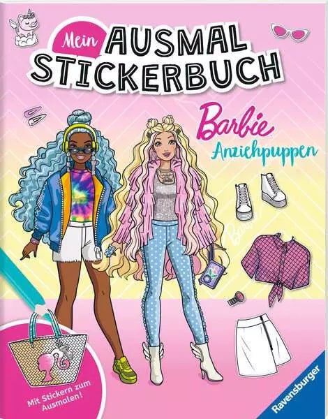 Das Barbie Ausmalstickerbuch Anziehpuppen verbindet Mode, Kreativität und Sticker-Spaß in einem Heft. Auf 24 detailreich gestalteten Seiten können Kinder ihre Lieblings-Barbies immer wieder neu einkleiden und individuelle Looks zusammenstellen.