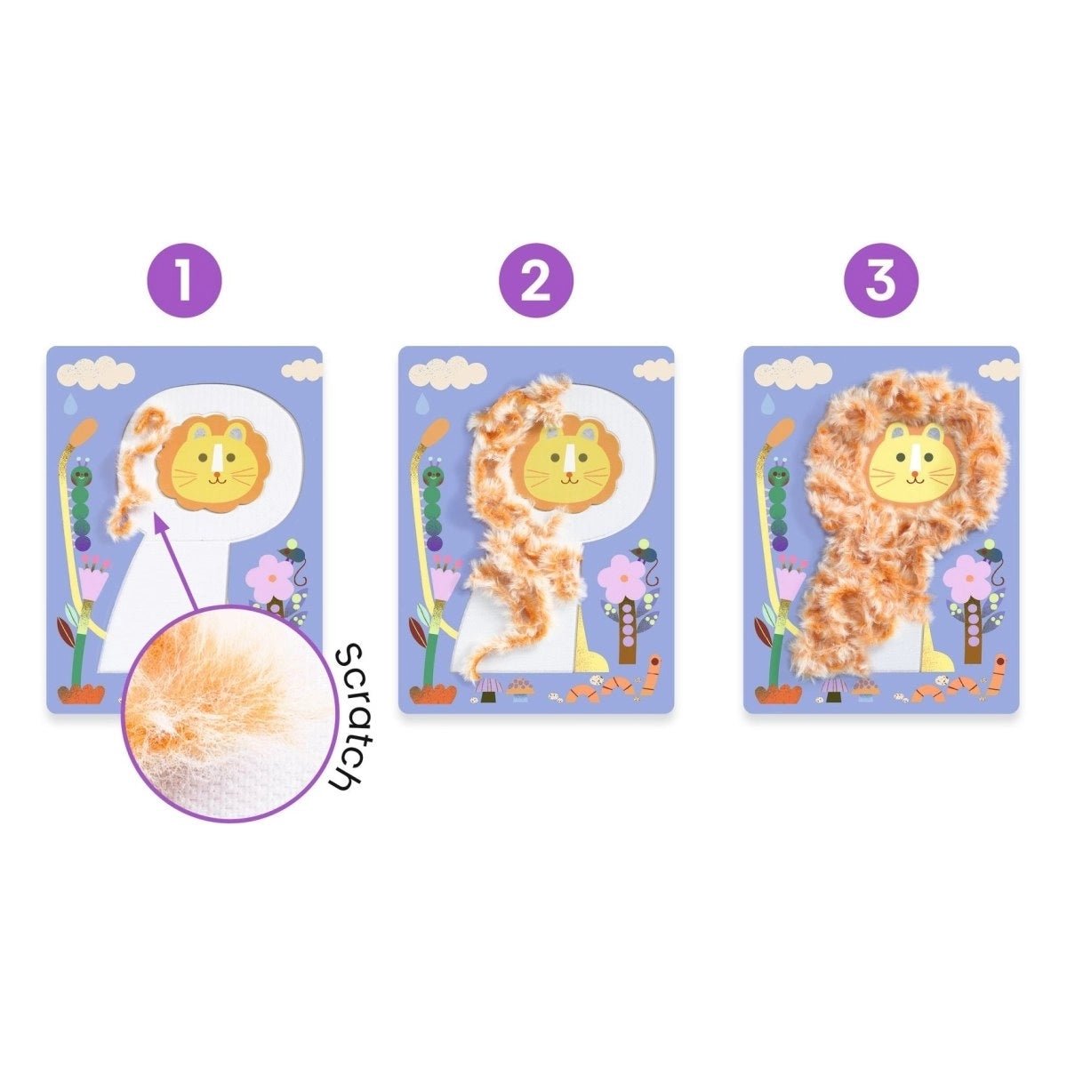 Mit der Djeco Bastelpackung Flauschige Freunde entdecken Kinder eine kreative Beschäftigung, die so weich und liebenswert ist wie ein Kuscheltier. Die Kinder setzen flauschige Wollfäden auf vorgesehene Klettzonen und gestalten daraus niedliche Tiere. Dabei entstehen kleine, greifbare Kunstwerke, die nicht nur schön aussehen, sondern sich auch angenehm anfühlen.