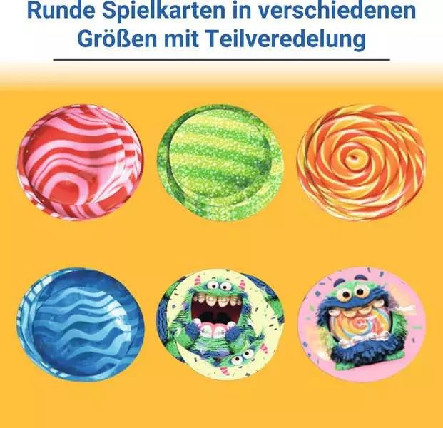 Das Kinderspiel Stichspiel ab 5 Jahren führt Kinder schrittweise an ein klassisches Kartenspielprinzip heran. Unterschiedlich große Karten zeigen intuitiv, welche Karte stärker ist. Spieler legen abwechselnd Bonbonkarten aus und versuchen den Stich zu gewinnen. Gleichzeitig beeinflussen Zucker-Chips den Wert jeder Runde. Dadurch entsteht ein Kartenspiel für Kinder ab 5 Jahren, das Planung mit Glück kombiniert. Eine optionale Profivariante ergänzt das Grundspiel um zusätzliche Überraschungen.