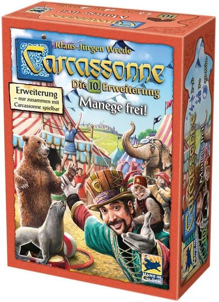 Carcassonne – Manege frei! bringt mit einem wandernden Zirkus frischen Schwung in den beliebten Legespiel Klassiker. Zieht der Zirkus von Ort zu Ort und schlägt sein Zelt auf, werden alle Meeple in der Umgebung magisch angezogen. Dadurch entstehen neue, überraschende Wertungssituationen, die das Spiel abwechslungsreicher und lebendiger machen.