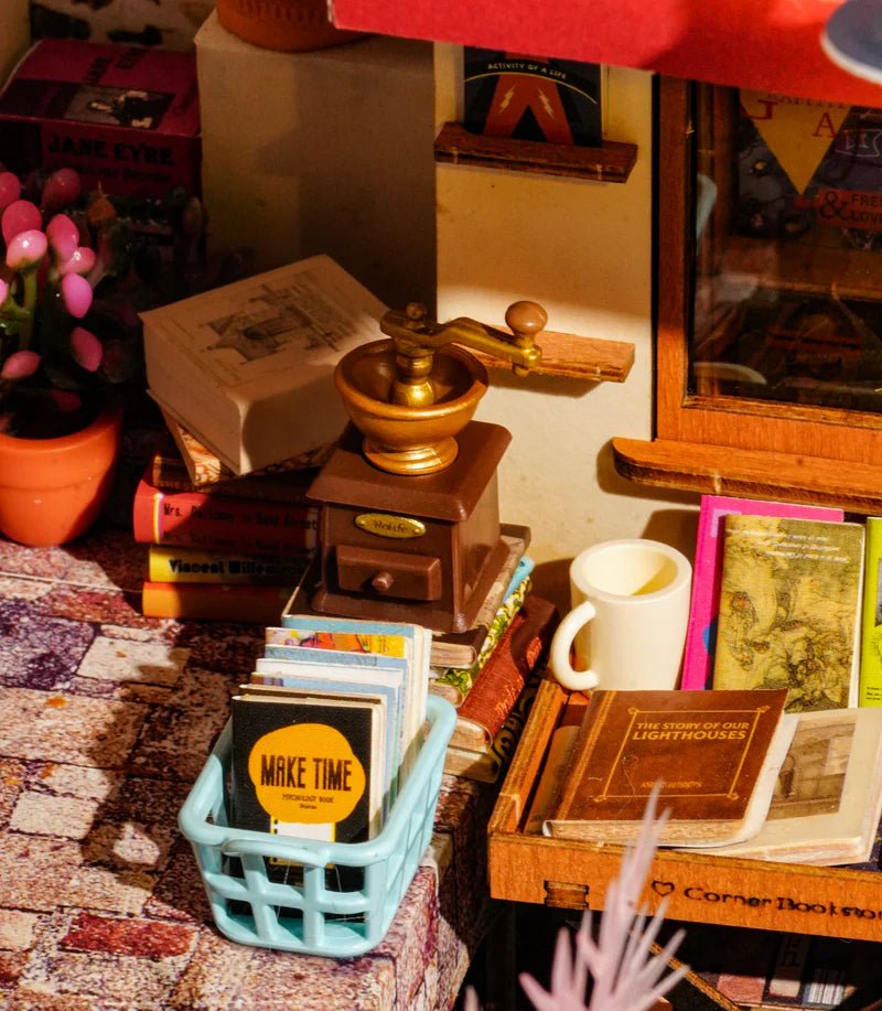 Rolife Corner Bookstore – 3D Holz-Miniatur-Buchladen mit LED-Licht & Retro-Deko