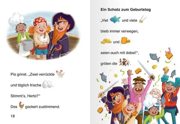 Leserabe – Piratin Pia auf Schatzsuche ist ein fröhliches Vorlesebuch für Kinder ab 5 Jahren, das erste gemeinsame Leseerlebnisse ermöglicht. Pia ist mit ihrem Piratenschiff auf hoher See, doch an Bord verschwinden plötzlich Zwieback, Fisch und sogar eine Augenklappe. Mutig macht sich die kleine Piratin auf Spurensuche unter Deck – und erlebt dabei ein überraschendes Abenteuer.