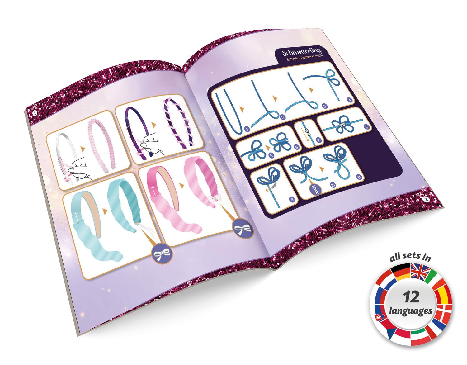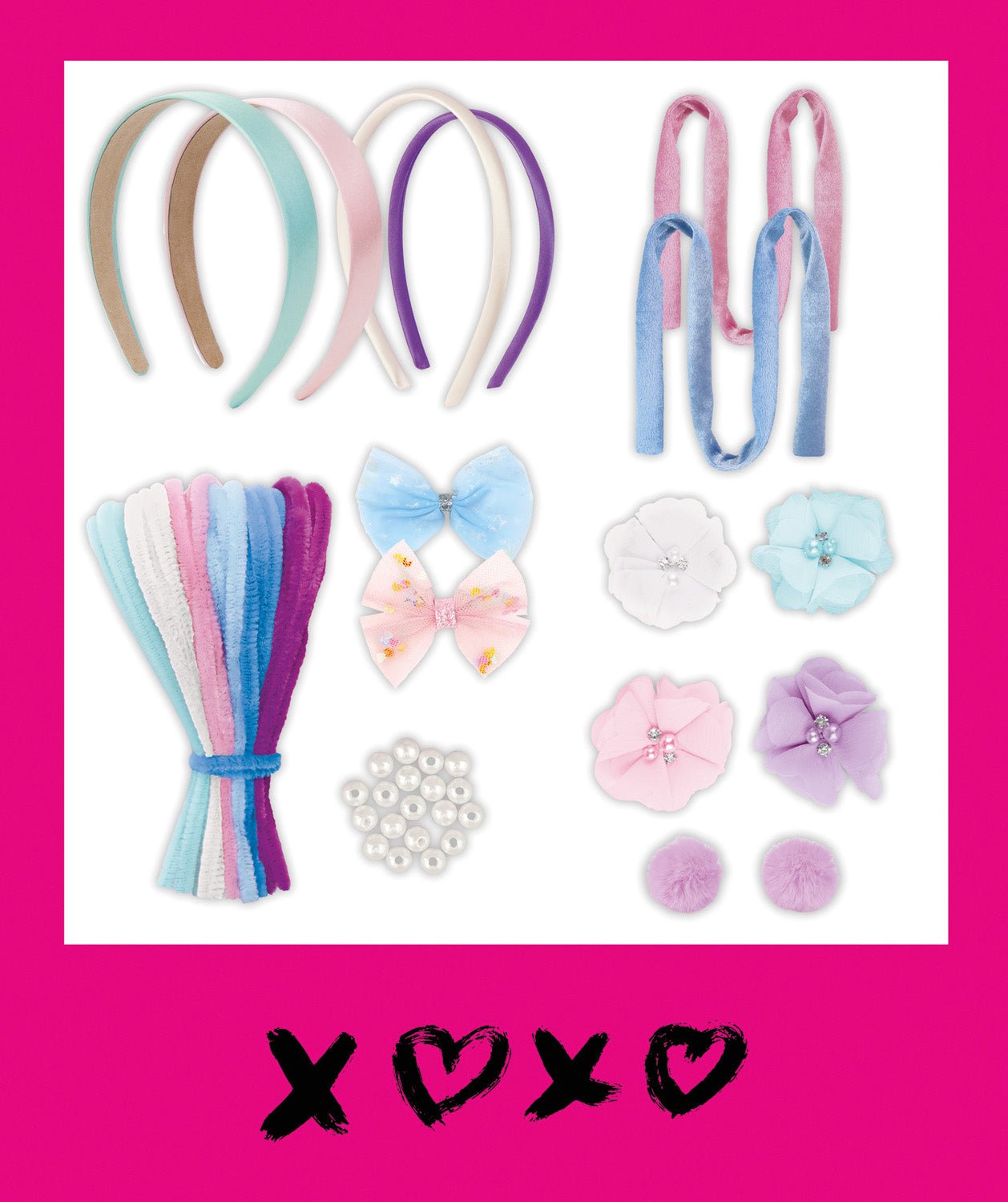 • Komplettset mit Haarreifen, Accessoires und Satinbändern