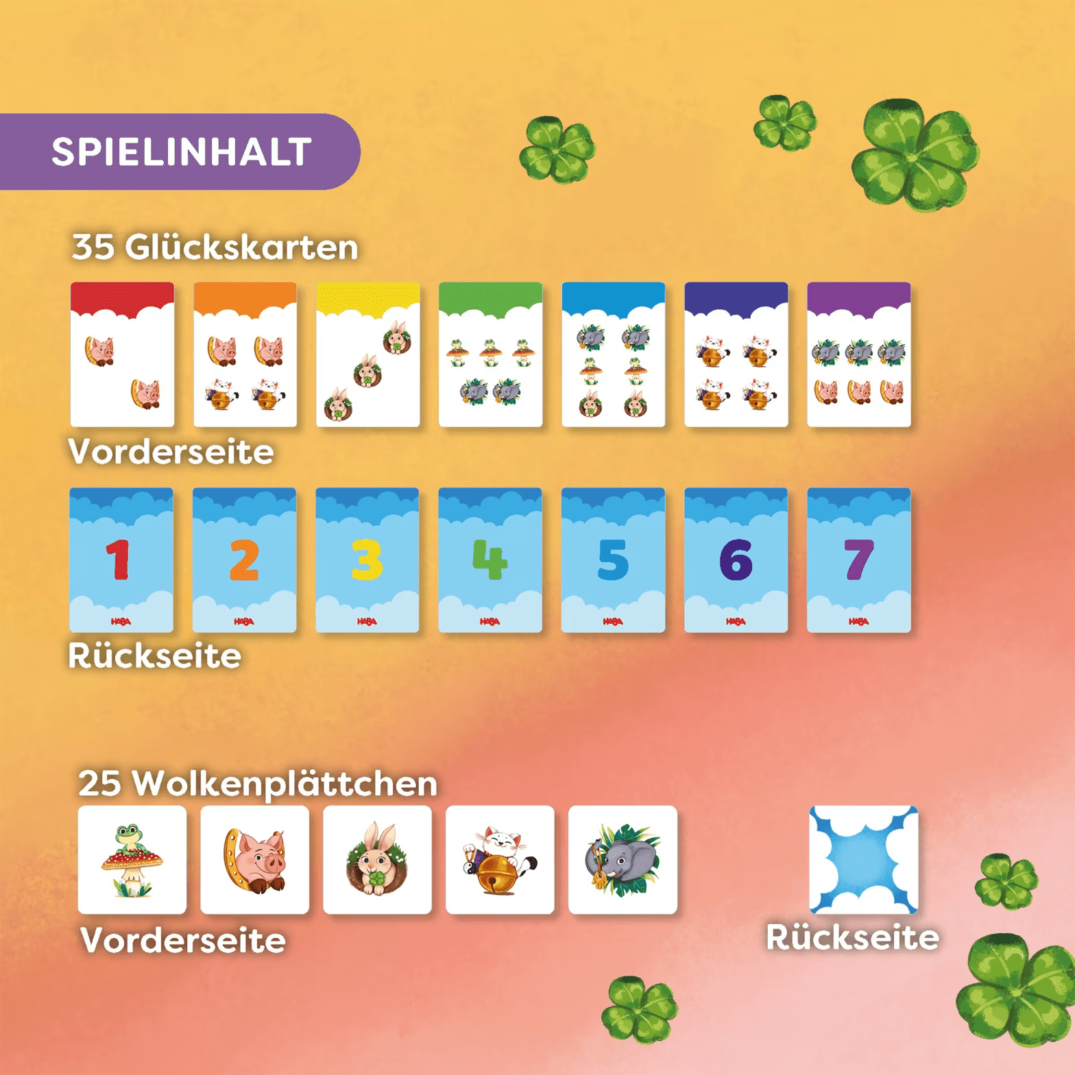 • Mit 35 Glückskarten und 25 Wolkenplättchen