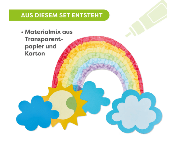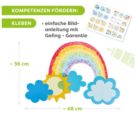 HABA Sachenmacher Erstes Kleben Regenbogen ab 3 Jahren ist ein kreatives Fensterbild Bastelset für Kinder, das erste Klebeübungen spielerisch begleitet. Aus farbigem Transparentpapier und vorgestanztem Fotokarton entstehen leuchtende Regenbogen Motive mit niedlichen Einhörnern. Kinder gestalten bunte Mähnen und setzen einzelne Elemente Schritt für Schritt zusammen. Das Bastelset für Fensterbilder ab 3 Jahren unterstützt die Entwicklung der Feinmotorik und fördert die Konzentration bei einfachen, gut verständlichen Arbeitsschritten. Die bebilderte Anleitung sorgt für eine klare Orientierung und ermöglicht ein selbstständiges Arbeiten mit Geling Garantie. Ein liebevoll gestaltetes Kreativset für kleine Bastelfans, das Farbe ins Kinderzimmer bringt und besonders am Fenster für schöne Lichteffekte sorgt.