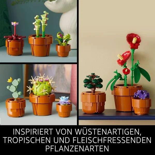 Das Set kombiniert tropische Pflanzen, Wüstenpflanzen und fleischfressende Gewächse, die jeweils in schlichten, baubaren Terrakotta-Töpfen präsentiert werden. Dank der unterschiedlichen Schwierigkeitsgrade eignet sich das Set sowohl für LEGO-Einsteiger als auch für erfahrene Baumeister. Die Modelle können gemeinsam mit Freunden oder Familie gebaut werden und laden zu entspannten Bauphasen ein.