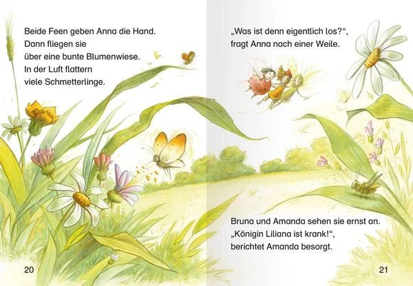 Leserabe Feenabenteuer zum Lesenlernen entführt Kinder in eine zauberhafte Welt voller Feen, Magie und Fantasie. In der ersten Geschichte sucht Anna gemeinsam mit zwei Feen die Zauberblume, um die Feenkönigin gesund zu machen. In der zweiten Geschichte lernt Fee Federleicht, mit Hilfe des Einhorns Rosalie an sich selbst zu glauben und ihre Zauberkraft zu entdecken.