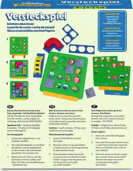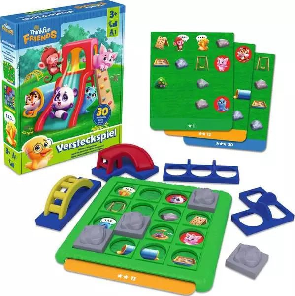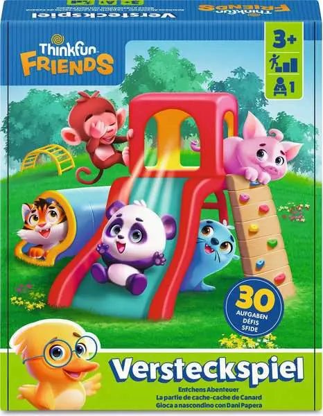 Mit ThinkFun Friends: Versteckspiel tauchen Kinder spielerisch in die Welt des logischen Denkens ein. Gemeinsam mit Dani Duck und ihren Freunden lösen sie altersgerechte Aufgaben, bei denen es darum geht, Spielplatzteile richtig zu platzieren und Zusammenhänge zu erkennen. So wird das Denken in Lösungen ganz natürlich und mit viel Freude gefördert.