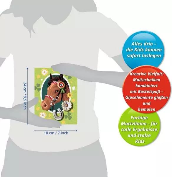 Dieses Ravensburger Kreativset ab 9 Jahren ist eine ideale Geschenkidee für Kinder, die Pferde lieben und gerne malen und basteln.