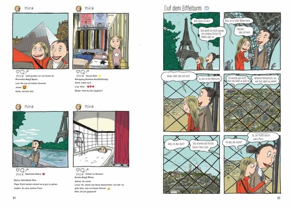 Comic Mädchen ab 10 Jahren, das Gefühle nicht vereinfacht: Mira steckt zwischen Freundschaft, einer Mutter die nervt, und einem Sommer, der alles verändert. Sabine Lemires vierter Mira-Band wechselt geschickt zwischen Comic-Sequenzen, Instagram-Posts und Tagebucheintragungen – das macht die Erzählform für Leserinnen ab 10 Jahren besonders zugänglich. Die Parisreise bringt Mira und Oma zusammen, bevor Ereignisse eintreten, auf die niemand vorbereitet ist. Rasmus Bregnhøis Illustrationen transportieren Emotionen mit wenigen Strichen und treffen dabei genau die richtige Tonlage – weder kitschig noch zu schwer.