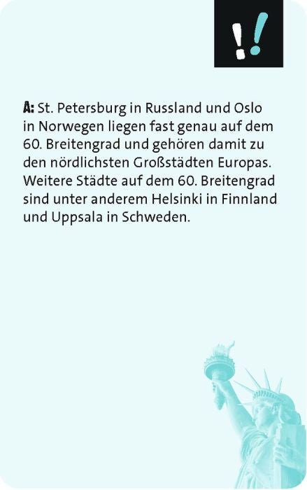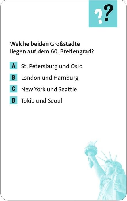 Ein vielseitiges Quiz- und Schätzspiel mit 75 Fragen rund um die Welt, das Wissen neu erfahrbar macht.