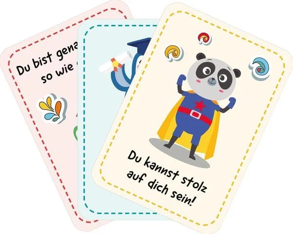 Die Mutmachkarten für die Schule begleiten Kinder mit inspirierenden Worten durch den Alltag. Jede Karte enthält eine kleine Affirmation, die Mut schenkt, das Selbstvertrauen stärkt und daran erinnert: Ich schaffe das! Ob vor dem ersten Schultag, einem aufregenden Auftritt oder einfach zwischendurch – die Karten helfen, innere Stärke zu finden und gelassen zu bleiben. Die bunte Kartenbox ist hochwertig verarbeitet und eignet sich wunderbar als Geschenkidee zum Schulstart oder für kleine Ermutigungen im Alltag.