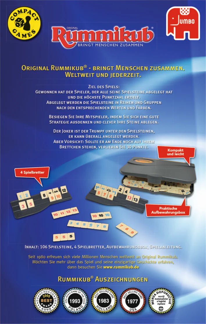 Kompakte Version des beliebten Klassikers Rummikub Original