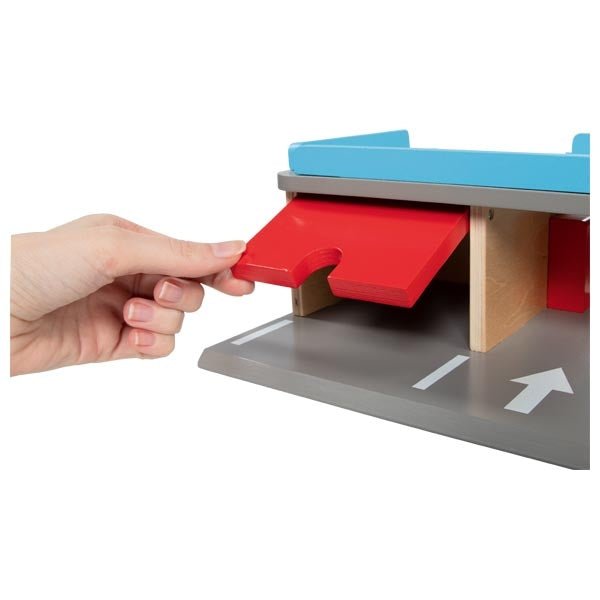 Mit dem Parkhaus City aus Holz entdecken Kinder spielerisch die Welt rund ums Auto. Auf zwei Ebenen können Fahrzeuge geparkt, über die Rampe nach oben gefahren oder durch die Waschanlage mit beweglichen Filzstreifengeschoben werden. Die Zapfsäule mit Schlauch lädt zum realistischen Tanken ein und macht das Rollenspiel besonders lebendig.