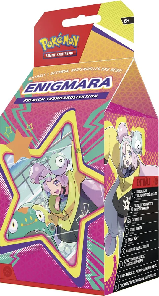 Das Pokémon-Sammelkartenspiel rund um Pokémon begeistert seit Jahren mit taktischer Tiefe und Sammelspaß. Die Enigmara Premium Turnierkollektion richtet sich an Kinder ab 6 Jahren, Jugendliche und erfahrene Spieler, die Wert auf hochwertige Karten und Turnierzubehör legen. Ein ideales Set für Wettbewerbsspieler und Pokémon-Fans.
