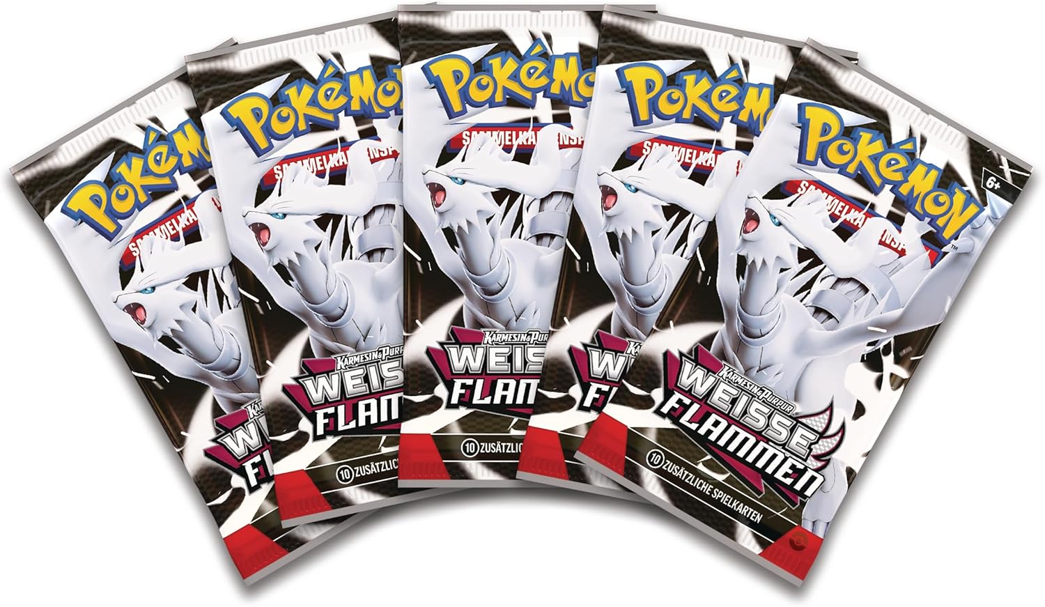 Enthält 5 Boosterpacks der Erweiterung Karmesin & Purpur – Weiße Flammen