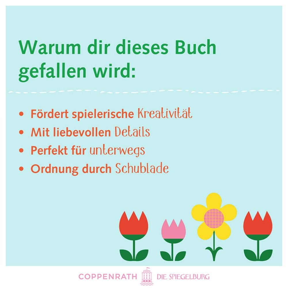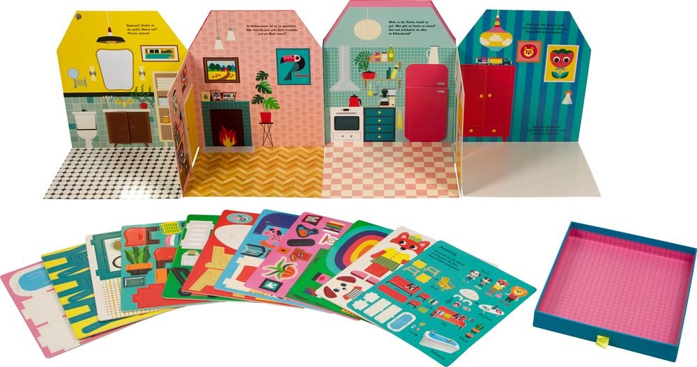 - Der Lieferumfang umfasst 8 Bögen mit heraustrennbaren und aufstellbaren Figuren und Möbeln, 2 Stickerbögen zum Dekorieren und eine integrierte Schublade zur Aufbewahrung aller Spielteile.
