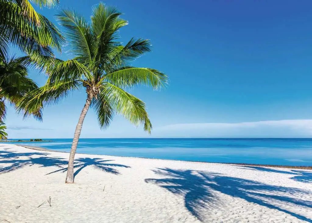 Stimmungsvolles Fernweh-Motiv mit Strand und Palme