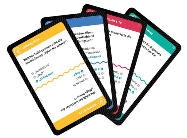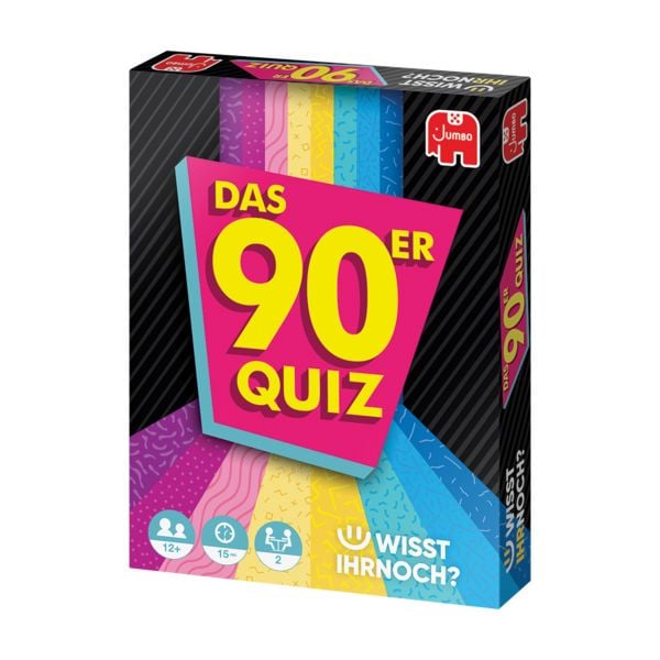 Das Quiz 90er Jahre von Jumbo lädt alle ein, ihr Wissen über eine der prägendsten Dekaden des 20. Jahrhunderts unter Beweis zu stellen – von Musik und Film über Sport bis hin zu Popkultur-Phänomenen, die eine ganze Generation geprägt haben. Das Kartenformat macht das Spiel zum unkomplizierten Begleiter für Spieleabende, Partys oder lange Zugfahrten. Mit gerade einmal 194 g und kompakten Abmessungen passt es in jede Tasche. Wer auch die 80er testen möchte, findet mit dem Schwestertitel „Wisst ihr noch? Das 80er Quiz" aus derselben Reihe die passende Ergänzung.
