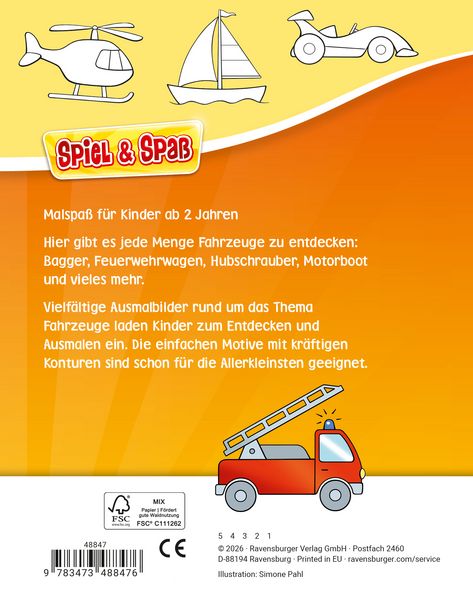 • Inhalt: Ausmalbilder mit Fahrzeugen aus Alltag, Einsatz und Freizeit